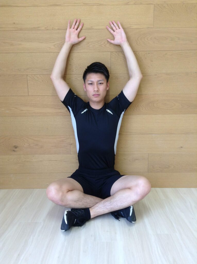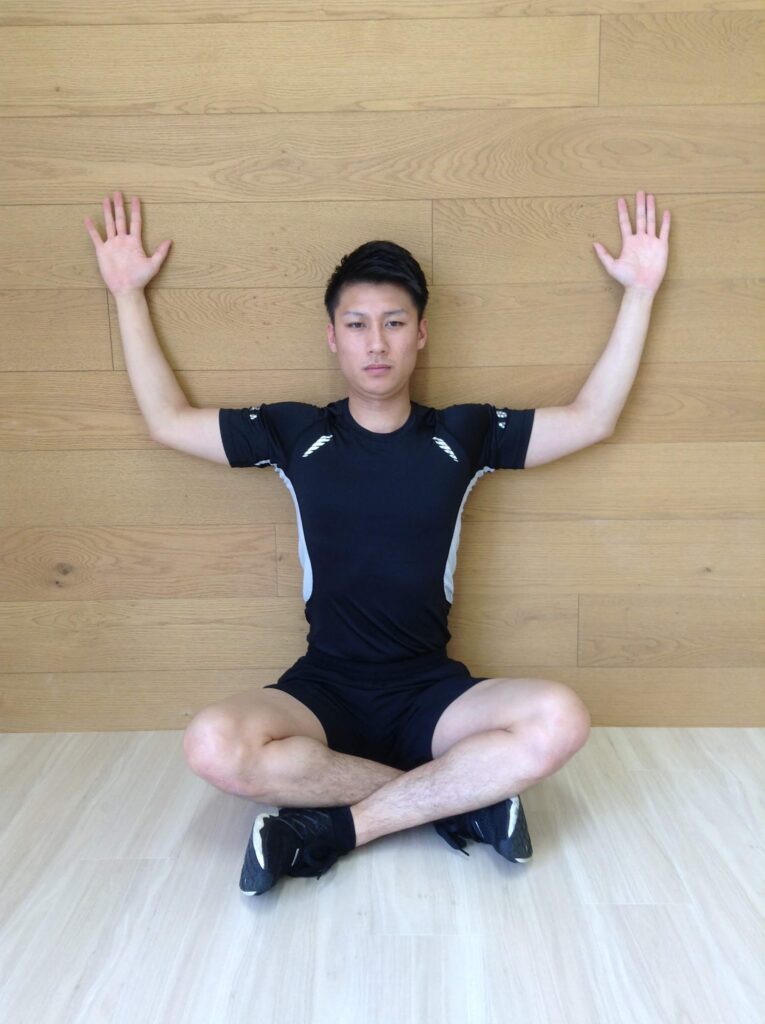 3. 壁から離れないように、両肘をゆっくりと上にスライドさせます。