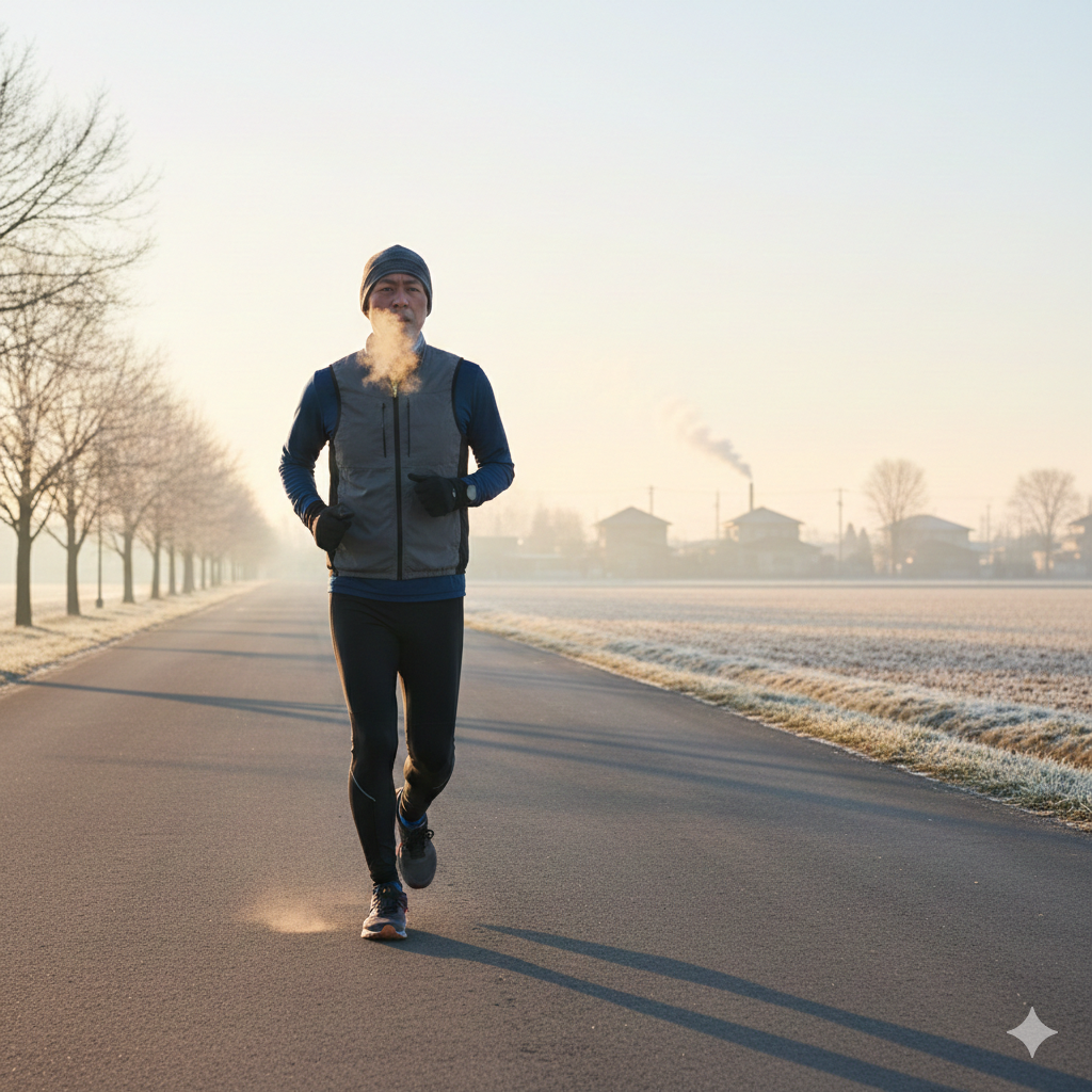 - 日の出を待ってから走る: 最も気温が下がる夜明け前後は、心臓への負担が最大化します。太陽が出て、路面温度が上がってから走り出すのが賢明です。