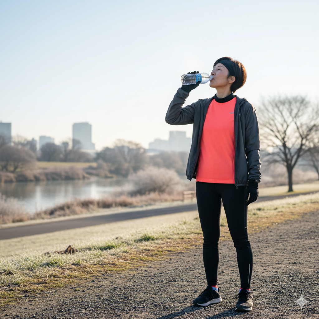 - 対策: 走行1時間前に200ml、走行中も30分ごとに一口(100ml程度)の摂取を心がけましょう。冷たすぎる水は内臓を冷やすため、常温に近いものがベストです。